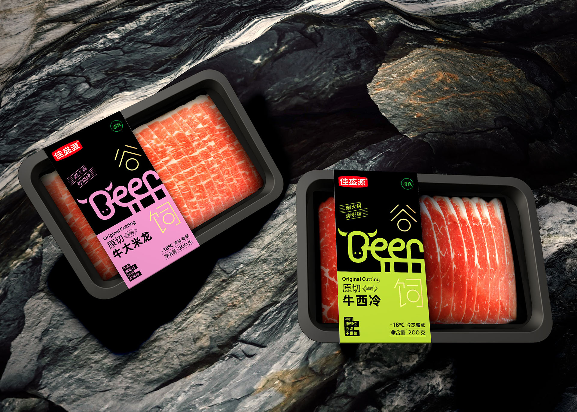 ●差异化设计:通过独特的色彩搭配、图形元素和字体设计,使佳盛源原切牛肉包装在同类产品中脱颖而出。